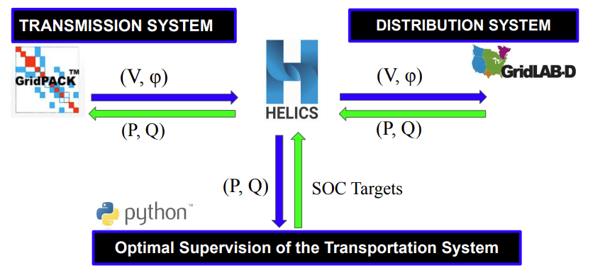 To do this, we created a spatio temporal prediction and coordination framework that brings together multiple modeling tools into one co-simulation environment. GridPACK is used to represent transmission system behavior, GridLAB-D captures distribution level effects, and HELICS synchronizes data across these models so we can observe real-time interactions between voltage, power flow, and battery state of charge. A Python-based supervisory controller then uses this information to schedule and coordinate charging activity, helping the system anticipate demand, prevent overloads, and maintain reliable operation.